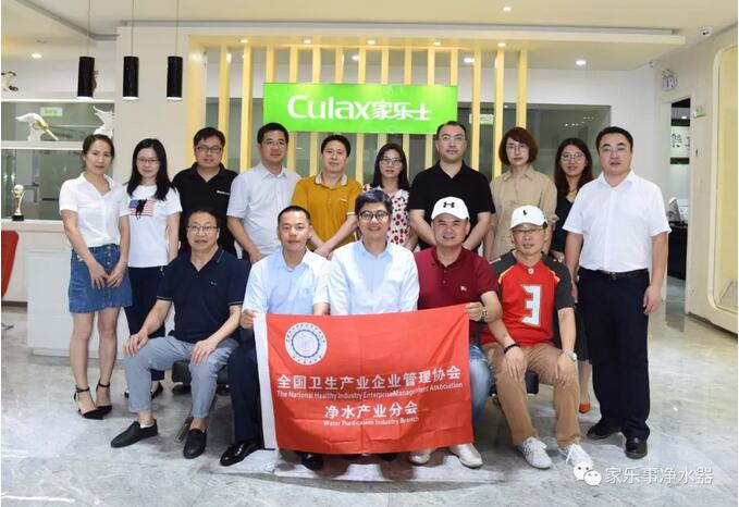 全國衛生產業企業管理協會副秘書長、凈水產業分會會長唐建星先生(前排中間)一行與家樂士總經理劉小平先生(前排左二)等領導親切合影