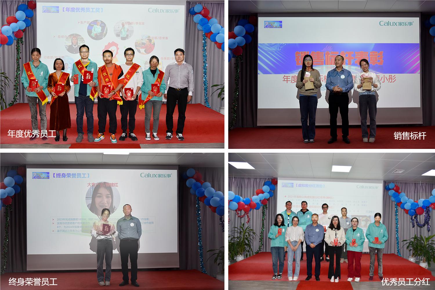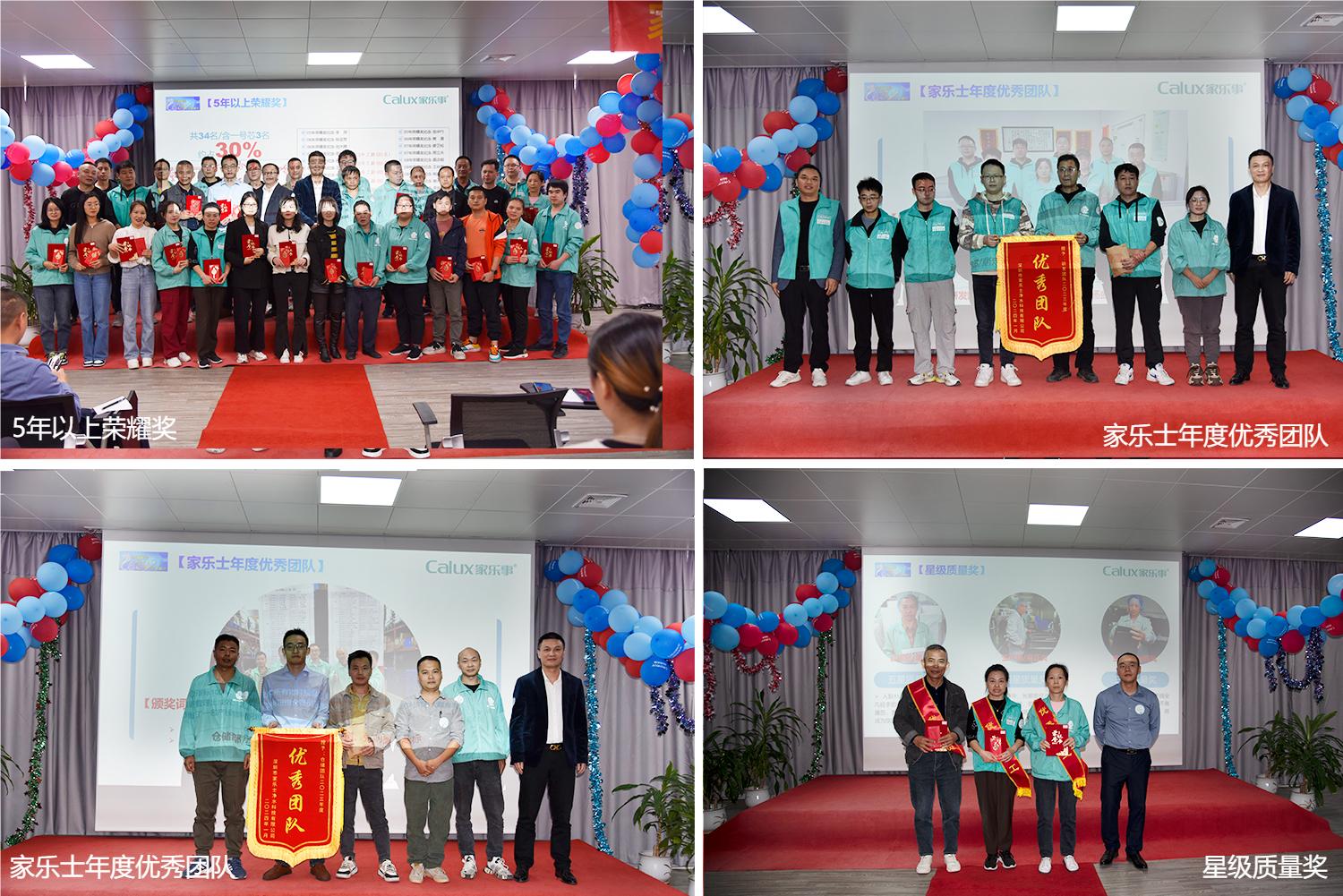 接著,公司對2023年度表現(xiàn)突出的員工和團(tuán)隊進(jìn)行了隆重表彰。5年以上榮耀獎、年度標(biāo)桿獎、優(yōu)秀團(tuán)隊獎、星級質(zhì)量獎、終身榮譽(yù)獎,這些在平凡崗位上做出不平凡成績的家樂士人,用實際行動詮釋了家樂士“嚴(yán)謹(jǐn)、高效、擔(dān)當(dāng)、奉獻(xiàn)”的價值觀,贏得了公司的贊許,是全體員工優(yōu)秀的榜樣。