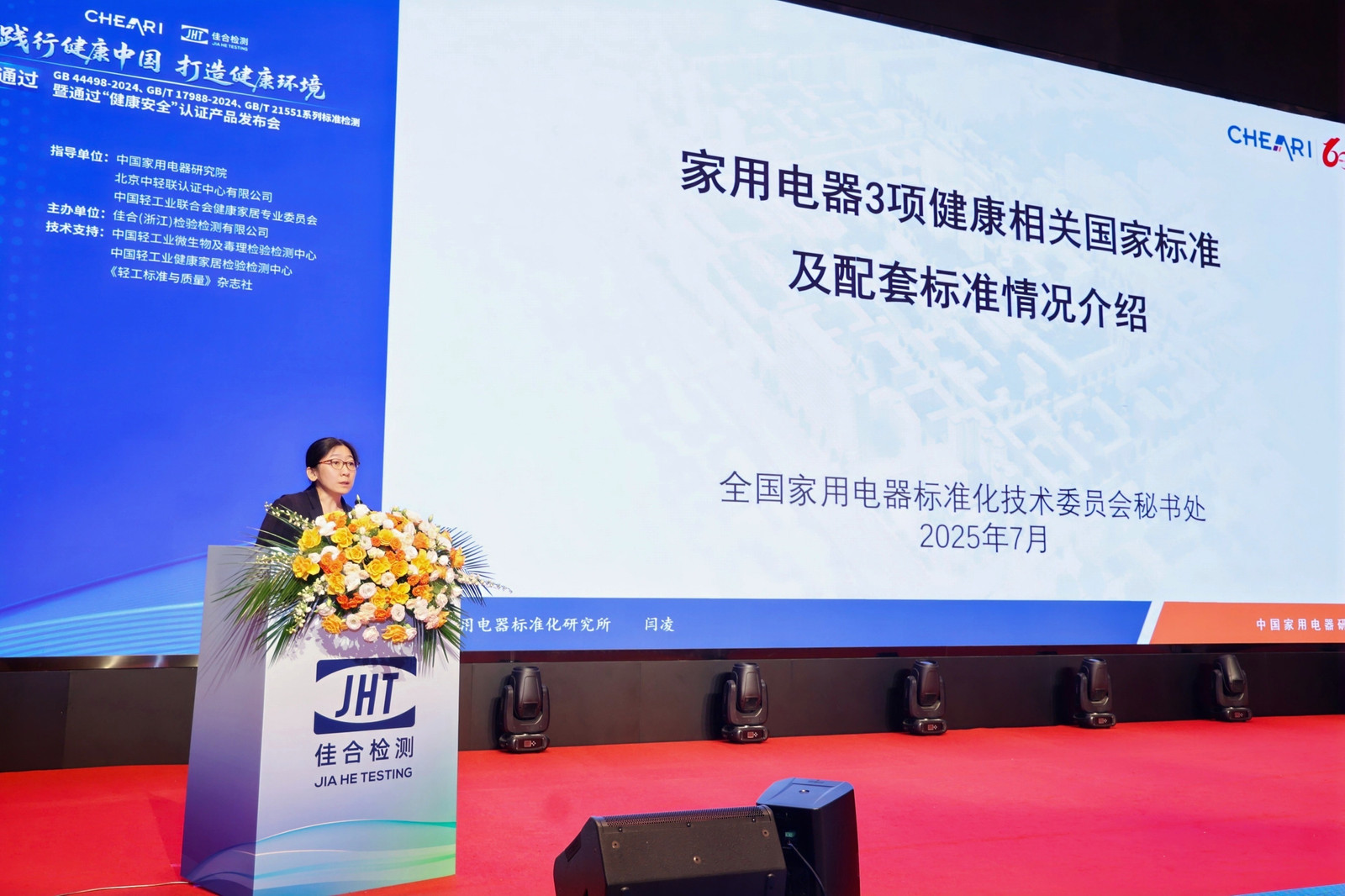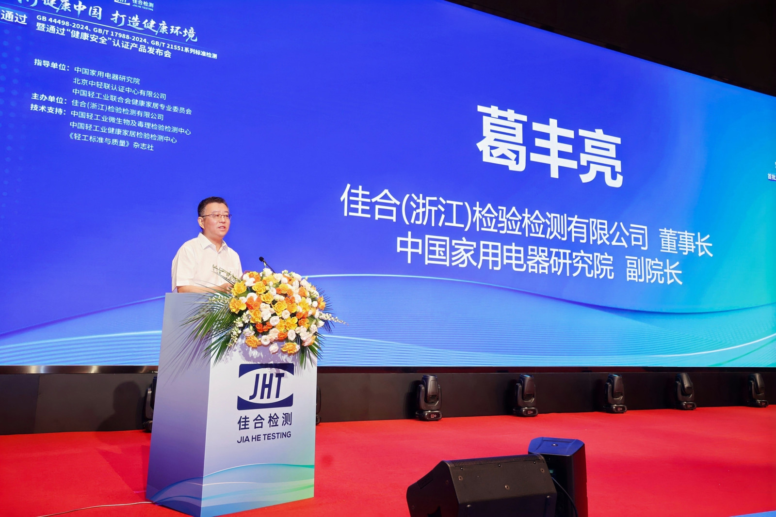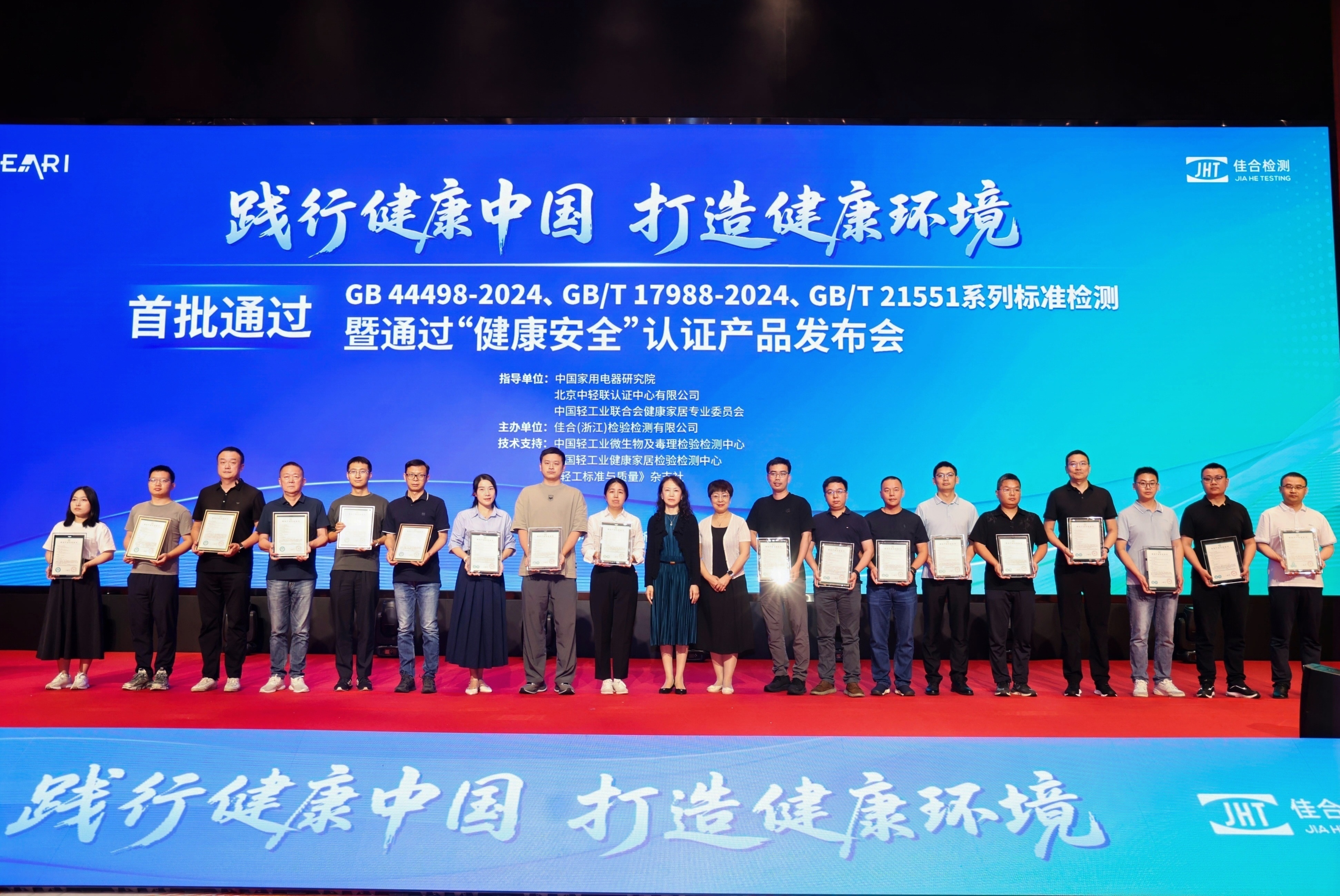 發布會現場,中國家用電器研究院副院長、佳合檢測董事長葛豐亮強調:佳合檢測積極響應黨的二十大提出的“推進健康中國建設”戰略,通過"技術檢測+權威認證"的創新模式,聯合北京中輕聯認證中心推出的"健康安全"認證體系,涵蓋空調、冰箱、洗衣機、凈水設備等近20個品類。