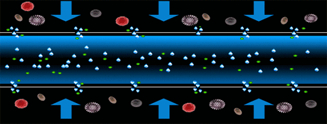 因只有水分子和部分有益于人體的礦物離子,能透過孔徑0.0001微米的RO反滲透膜。被膜拒之門外的所有細菌、微生物、泥沙、水垢、重金屬、有機物和無機物等將成為廢水,由廢水管排出。
