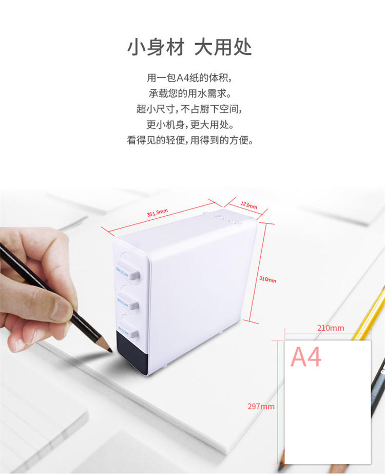 產(chǎn)品尺寸:351.5*123*310mm適用水質(zhì):市政自來(lái)水